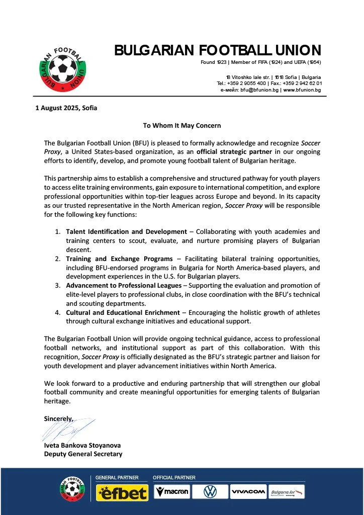 Each SoccerProxy camp is officially sanctioned by the Bulgarian Football Union, giving players a rare chance to be evaluated by real scouts from European clubs. Our relationships with Balkan-based academies open the door to international trials, not just domestic feedback.